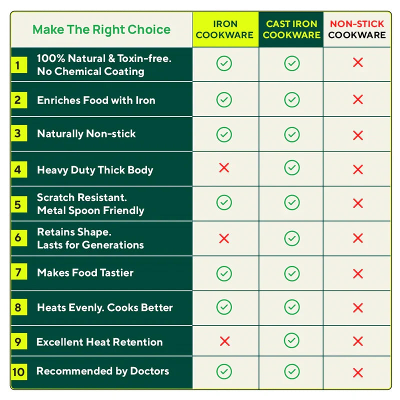 💊ENRICHES FOOD WITH IRON: This tawa releases iron in food that helps in fighting iron deficiency.