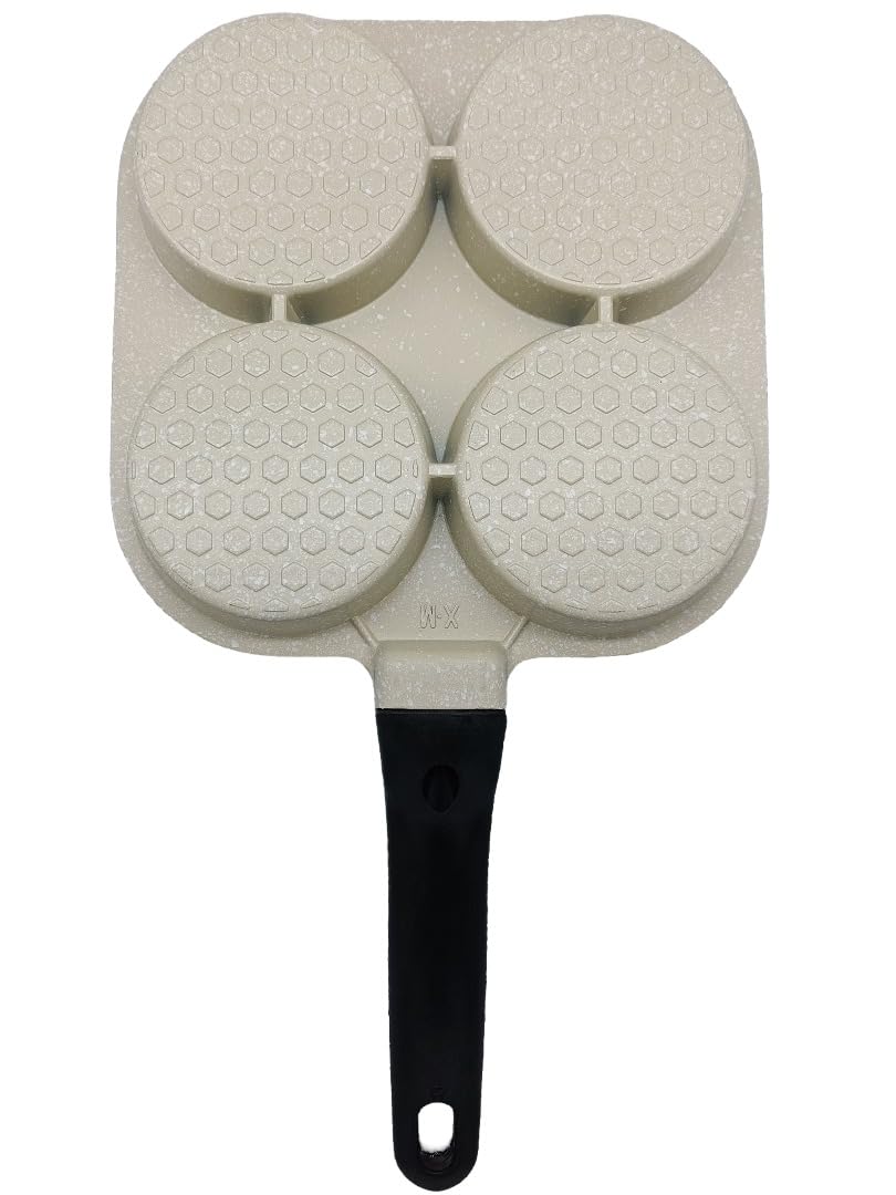 2heet Non Stick Appam Maker Uttappa Tawa (4-Cavities), Granite Uttapam Pan, Gas&Induction Compatible, 19.5 cm, PFOA Free (Beige)