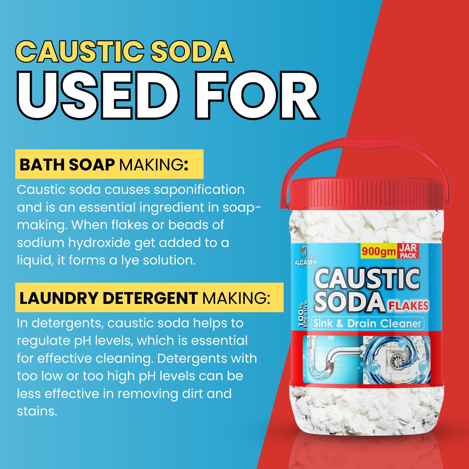 AAAL Caustic Soda Flakes 900gm (SUPER JAR PACK) Chimney Cleaner, Pure & Powerful Drain Cleaner