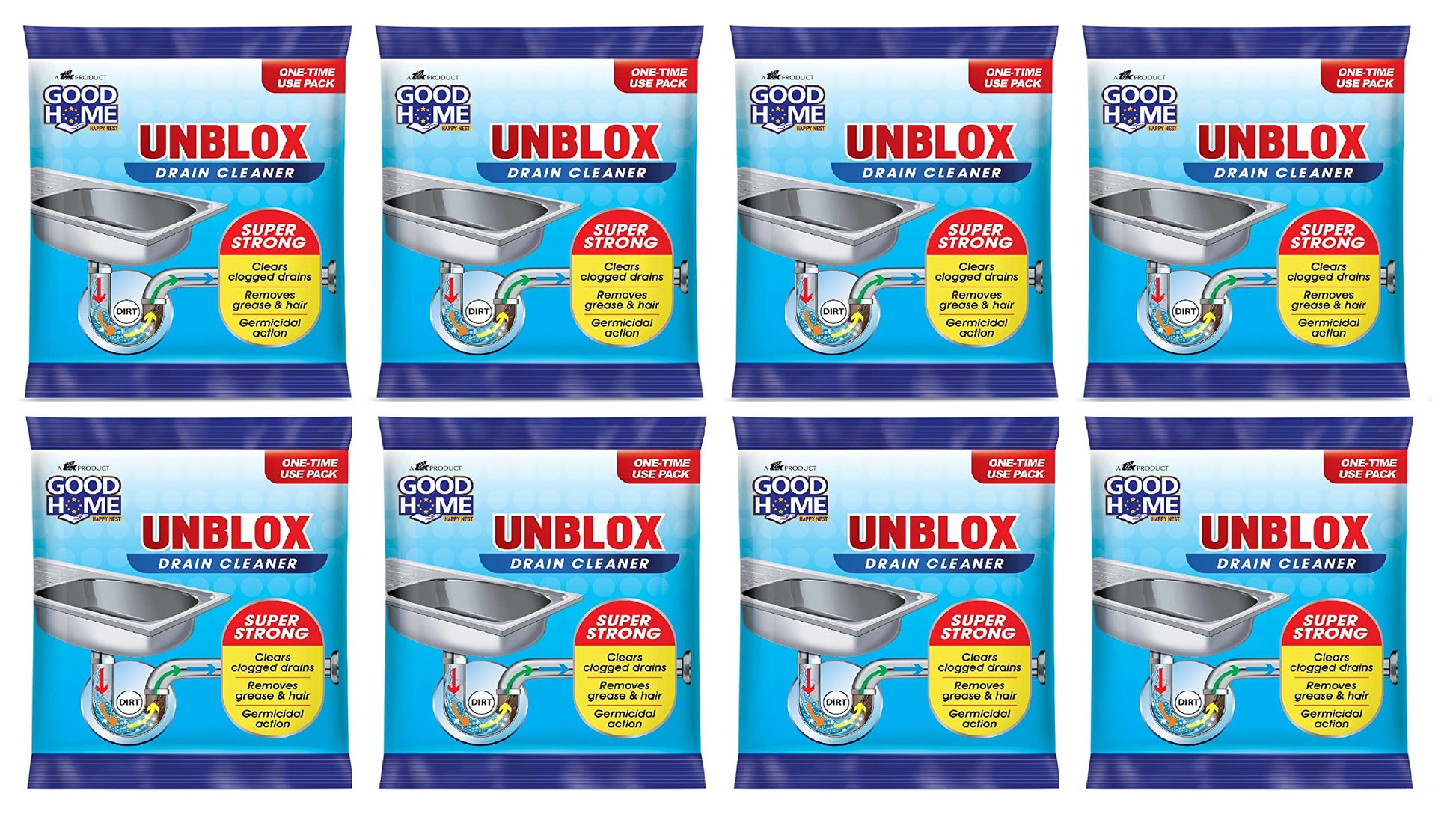 Good Home Unblox Drain Cleaner Effective Sink Cleaner, Drain Blockage Remover, Drain Pipe Cleaner(Pack of 8)