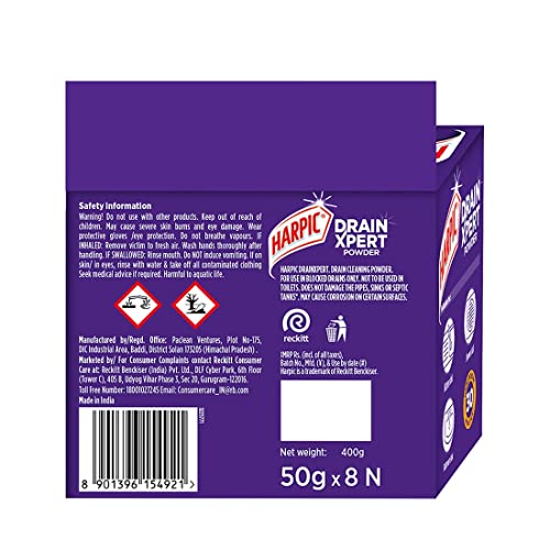 Harpic Drain Xpert Drain Cleaning Powder (50g x 8) | Removes Blockages within 30 mins