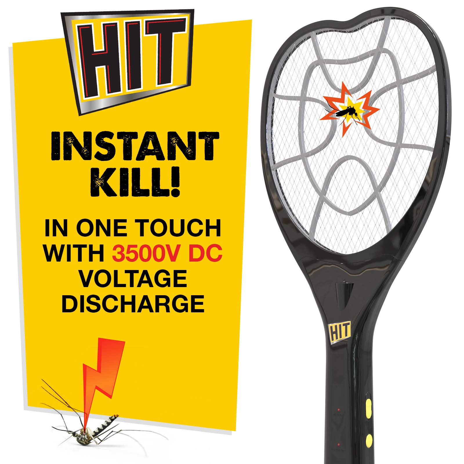 HIT Anti Mosquito Racquet - Rechargeable Insect Killer Bat with LED Light and Cockroach Killer Spray, 200ml Combo