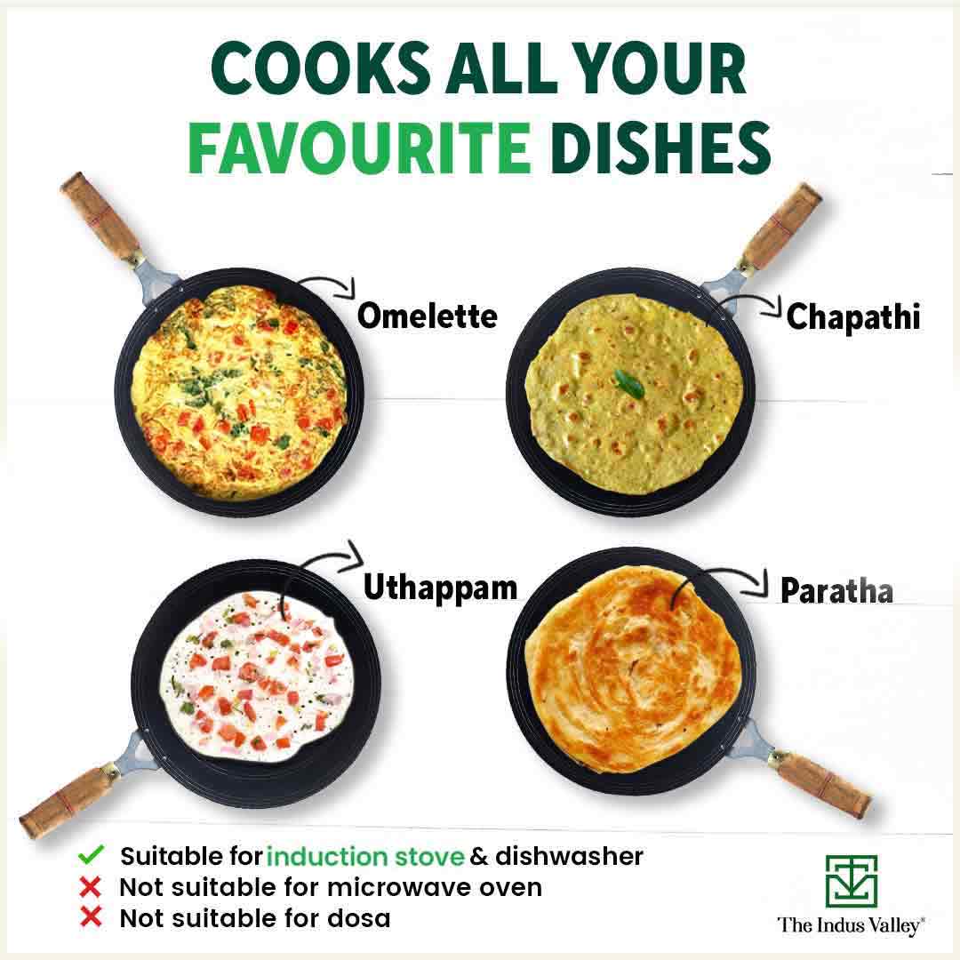 😎THE BEST CHOICE: If you are searching for a durable iron tawa online, then you must try this one! It is a healthier alternative to non-stick tawa that is generally covered with harmful coating. Do you wish to buy tawa online that is safe for your and your family’s health, then get this amazing tawa from The Indus Valley!