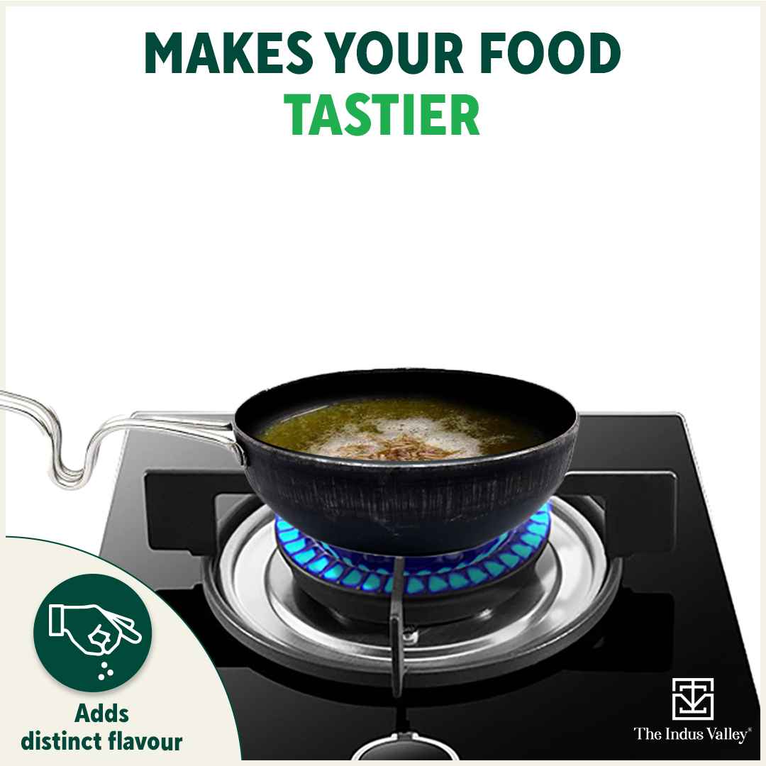 👍NATURALLY NON-STICK: This small kadai for tadka is pre-seasoned with 100% vegetable oil - gives it a naturally smooth surface.