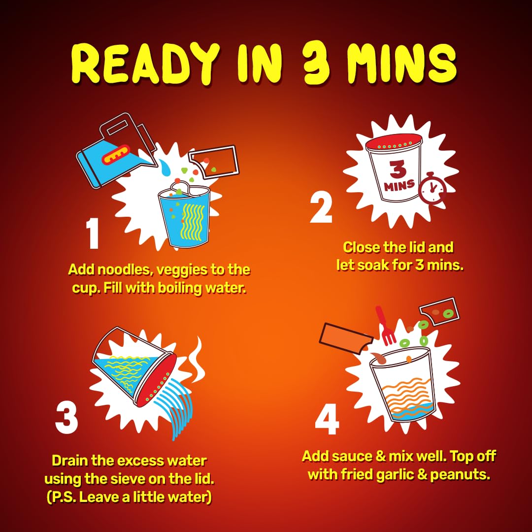 - Prepared using 100% natural ingredients, our ready to eat cup noodles require only 5 minutes to prepare by simply adding hot water.