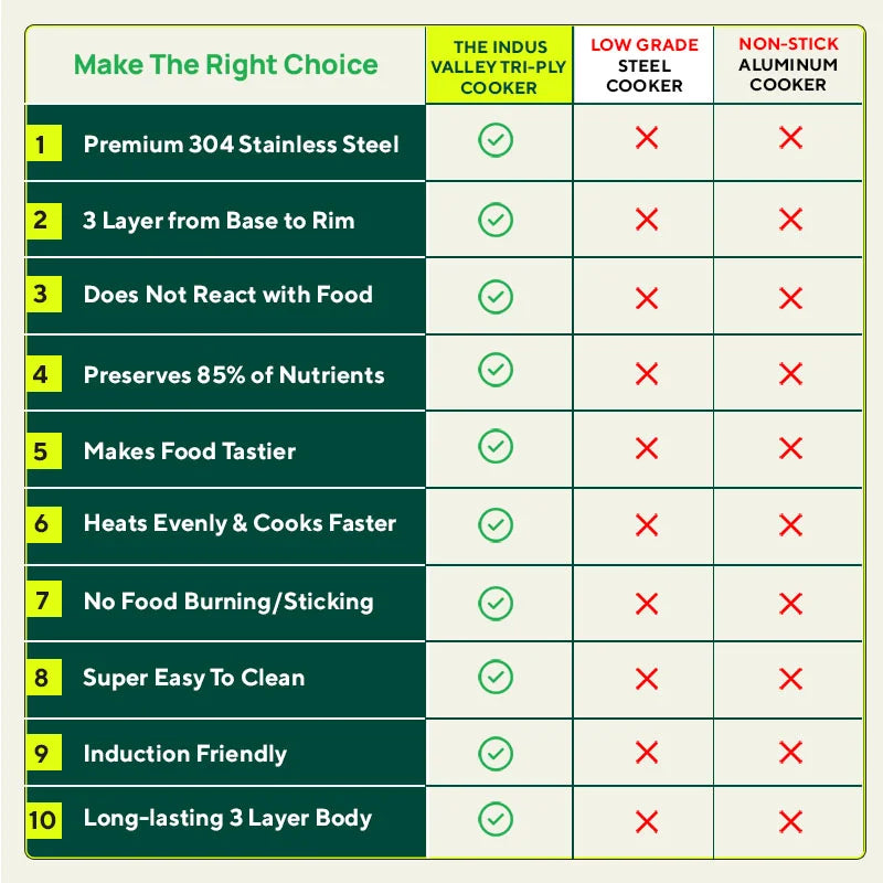 Coming from India’s 1st healthy cookware brand, you can be thus assured that this will be the best stainless steel pressure cooker ever. So, buy pressure cooker online from The Indus Valley and make your cooking really effortless.