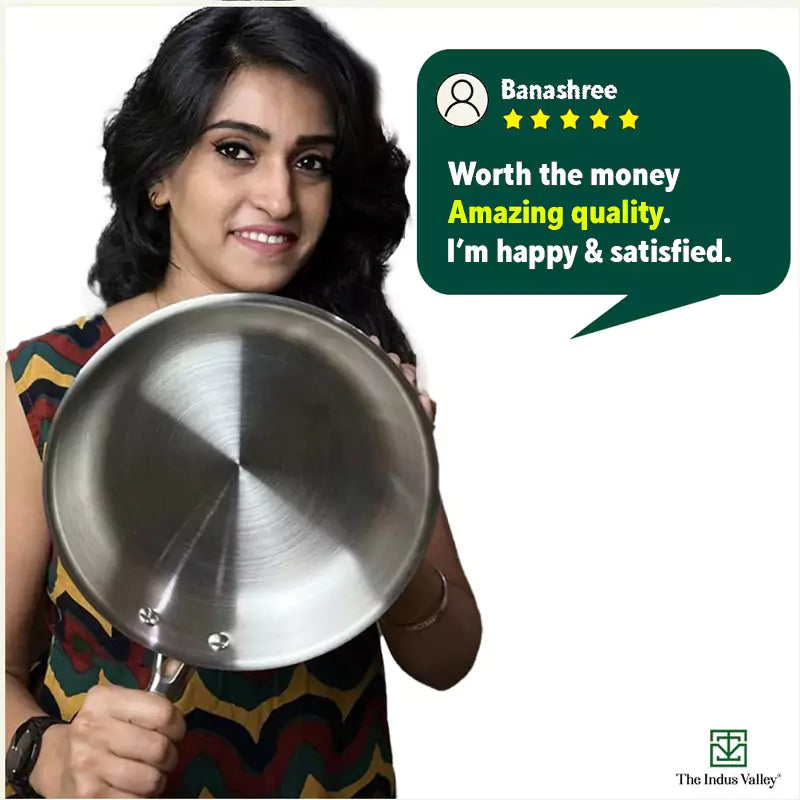 😎 THE BEST CHOICE: The Indus Valley’s triply frying pan is aesthetically designed for your comfort and safety. Without doubt you will call this as the best tri ply stainless steel frying pan in India. Don’t forget to check out The Indus Valley’s amazing stainless steel cookware set as well!
