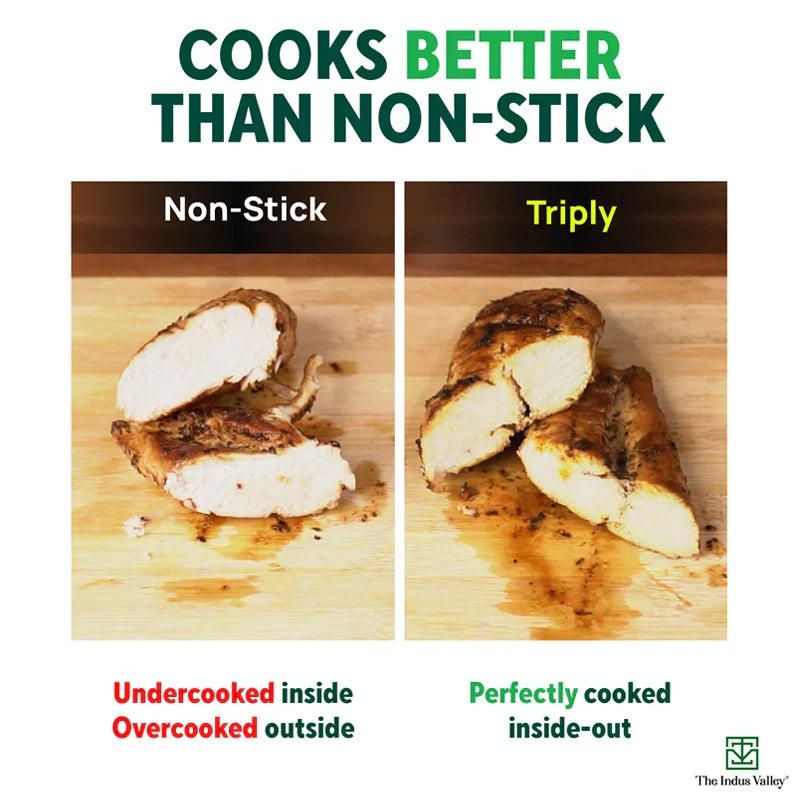 👌100% TOXIN-FREE: The Indus Valley’s TurboCukTM Triply Stainless Steel Frying Pan/Skillet is made of 100% food-safe metals, to give you a great, effortless cooking experience, without compromising on your health and ease of cooking.