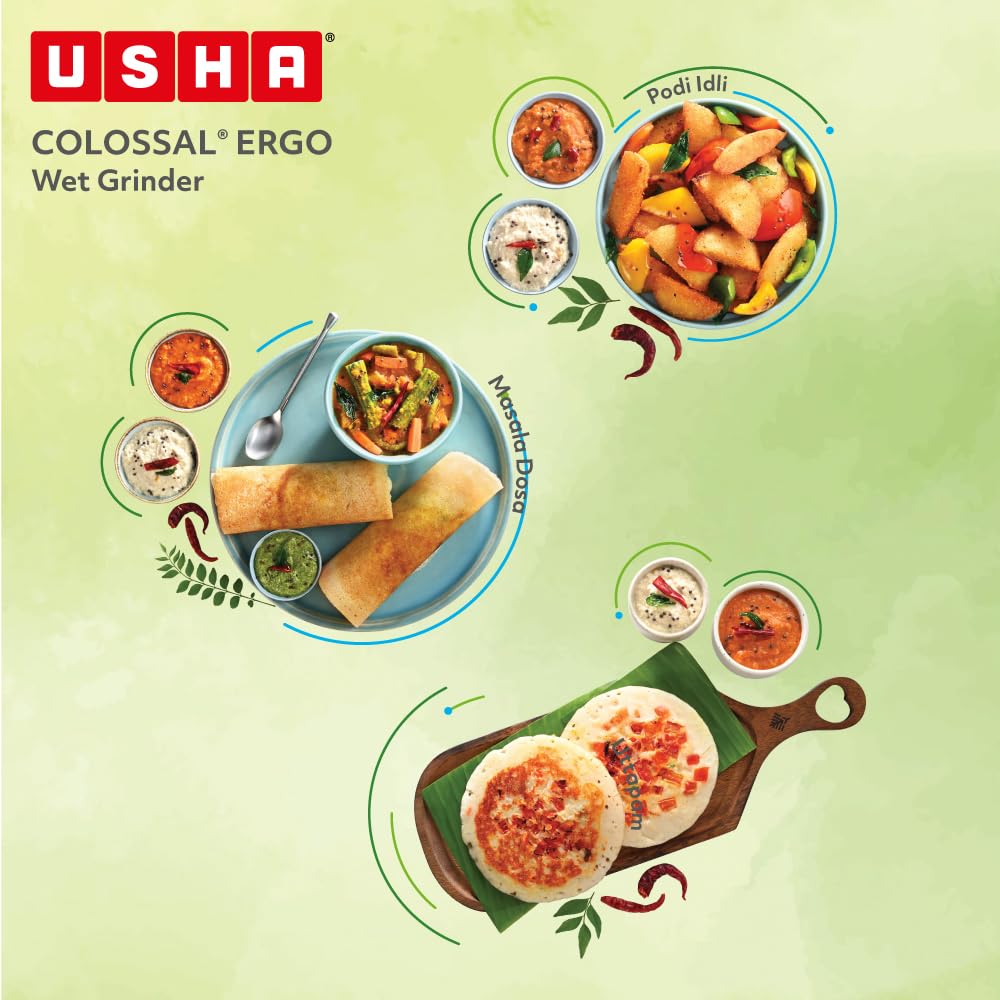 USHA Colossal Ergo Easy-Tilt Wet Grinder| 2L, 150W, 100% Copper Motor with Dual Flow Breaker, Stainless Steel Drum and Accessories| 10 Year Motor Warranty (Magenta)