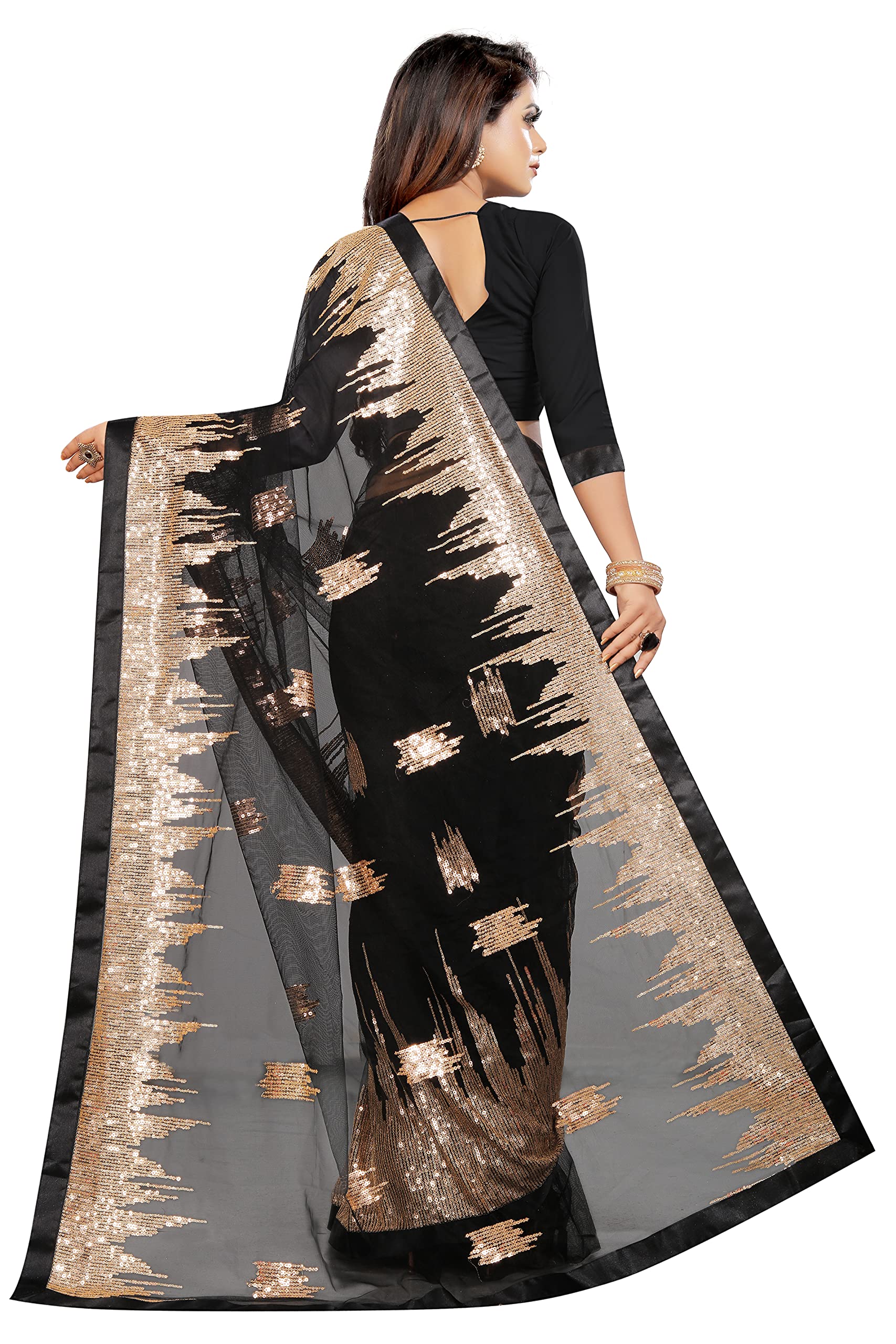 Vastraani Women's Sequined Woven Net Saree with Blouse Piece (Black, Free Size)