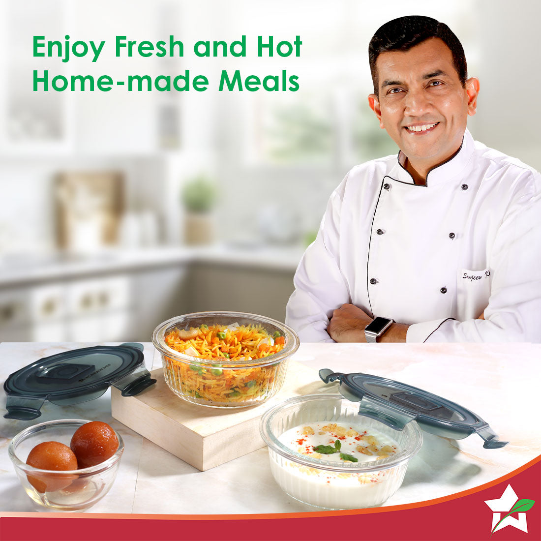 - Ideal Size: The glass container has been sized as per the needs of Indian food to hold just the right amount of dal, veggies, rice and curd for your meal.