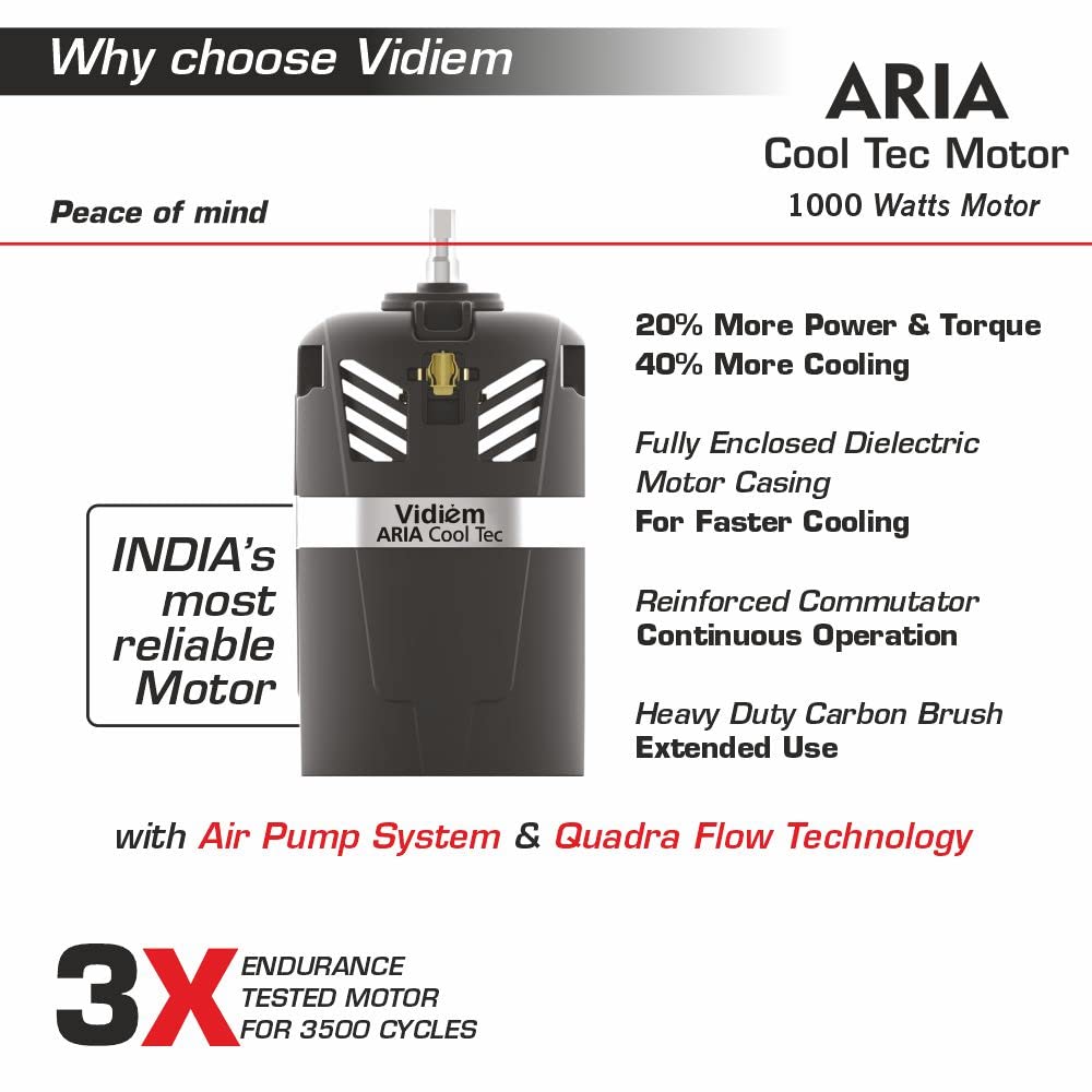 - 5-Year Warranty on Motor & 2-Year Warranty on Product- Aria Cool Tec Motor (Patent pending) with the unique Air Pump System, Quadra Flow Technology & Fully enclosed Di-electric Motor Casing provides 40% more cooling, 20% more torque, 20% more power & 10% less power consumption.