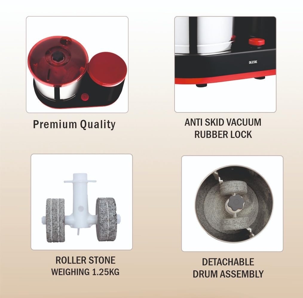 VIJAYALAKSHMI | Dezire 2 Litre | Heavy ABS Body Wet Grinder, 2L (Black & Red) | with Coconut Scrapper & Atta Kneader Attachment.
