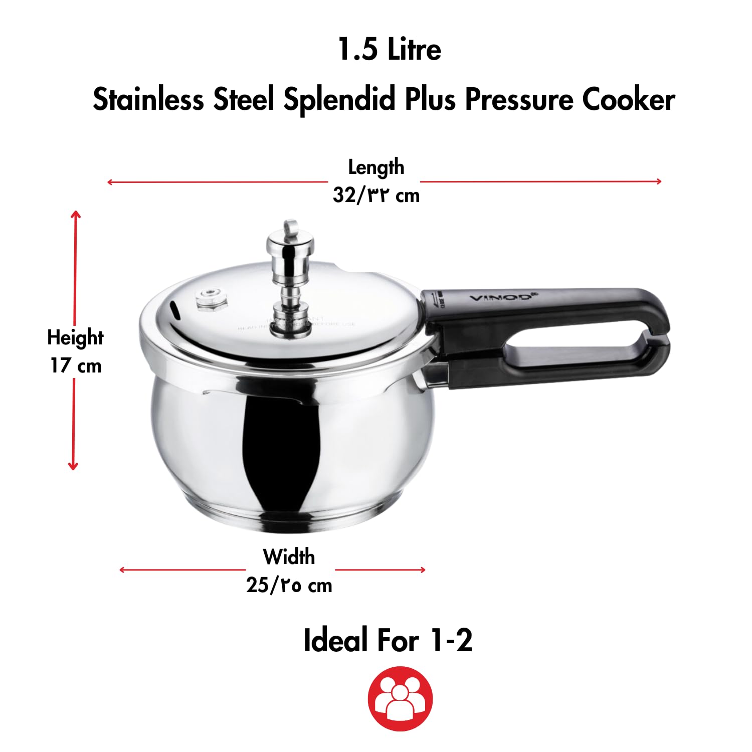 Vinod Splendid Plus Stainless Steel Pressure Cooker Outer Lid 1.5 Litre | SAS Bottom Handi Cooker | Extra Glass Lid | Induction and Gas Base | ISI and CE certified | 2 Years Warranty