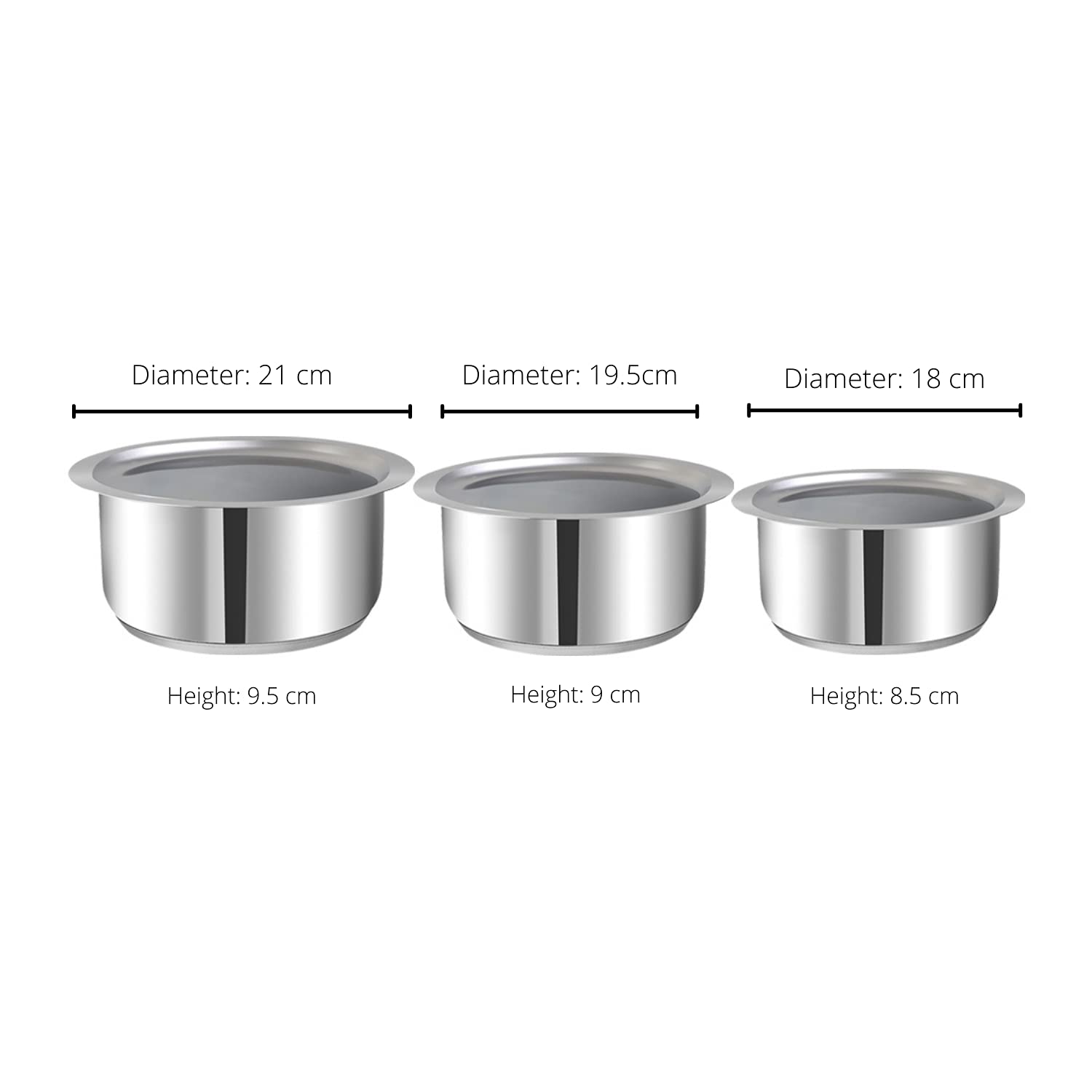 Vinod Stainless Steel 3 pc Tope Set with Capacity of 1.4 litres, 1.8 litres & 2.2 litres with Stainless Steel Lids (Gas Stove and Induction Friendly) - Silver, 24 Months Warranty