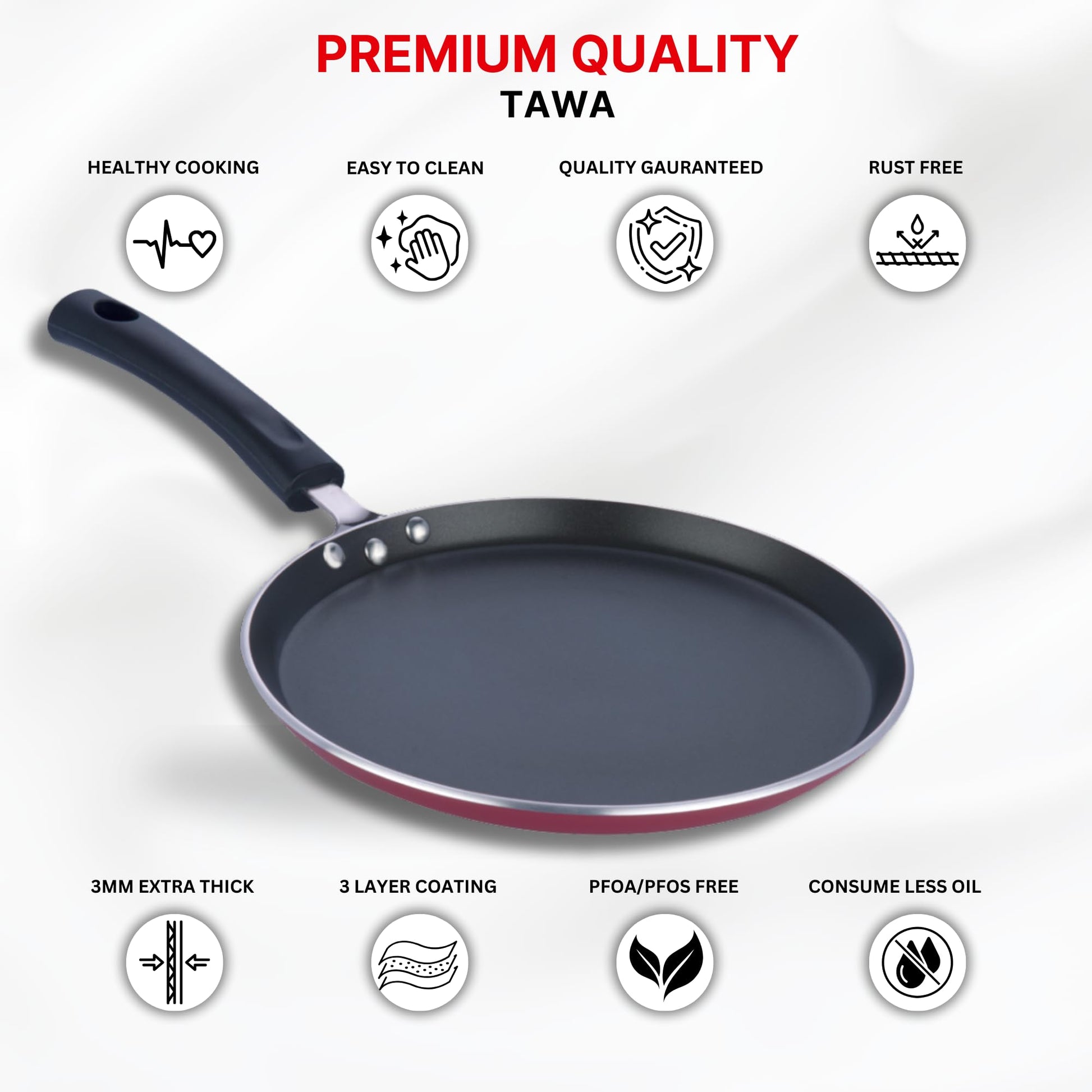 Vinod Zest Aluminium Non Stick Dosa Omni Tawa - 28cm | 4mm Extra Thick | 3 Layer Ceramic Coat | Bakelite Handle | Toxin Free | Gas Base - 1 Year Warranty