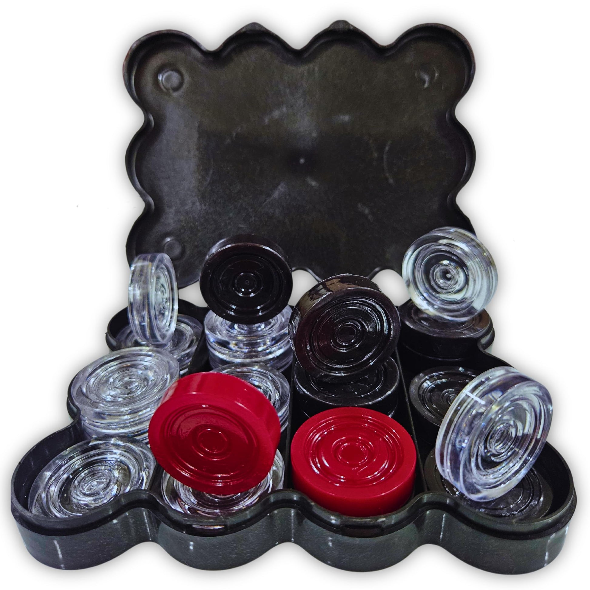 Vinson Carrom Board Coins in Box - 24 Pcs with 2 Strikers & Disco Powder (20 GMS) | Transparent Crystal/Acrylic Finish | Indoor Game Play Fun for Kids,Adults & Family