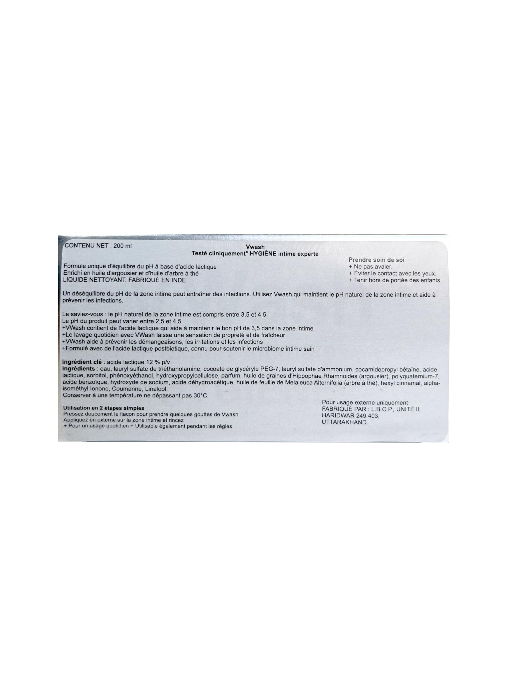 - BEST FEATURES : V Wash is a hygiene wash for women that is enriched with Sea Buckthron Oil & Tea-tree oil. This oil contains an abundance of vitamins, minerals, antioxidants and amino acids.