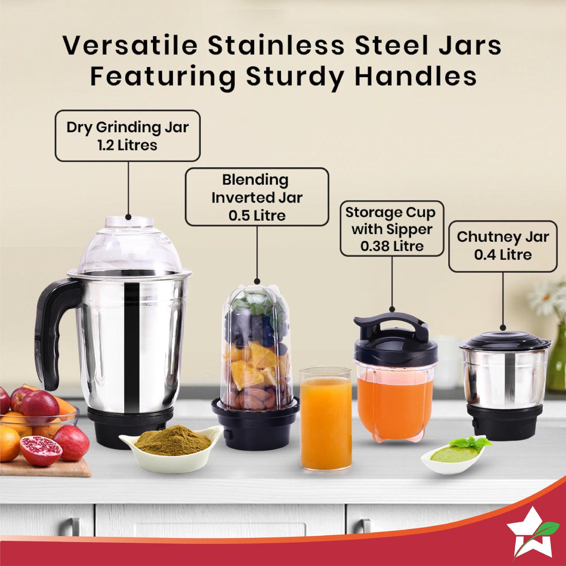 - High-Grade Stainless Steel Jars with Flow Breakers: The set includes durable and corrosion-resistant stainless steel jars that offer ample capacity for different purposes. They are equipped with flow breakers, which enhance the grinding efficiency by creating a vortex inside the jar, ensuring even and thorough blending of ingredients. They are easy to clean and maintain, ensuring long-lasting performance.