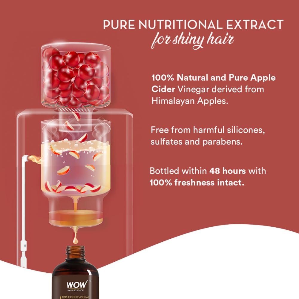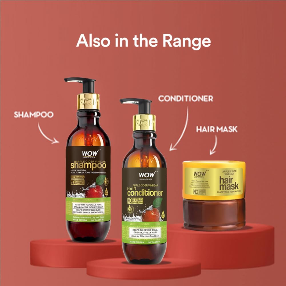 Details: WOW organics apple cider vinegar gentle & natural detox formula for stressed tresses removes buildups. restores shine & smoothness. made with natural apple cider vinegar. Enhanced with pure apple extracts. Ecocert certified bioactive haircare contains no sulphates or paraben undo the everyday damages heaped by styling products and dusty pollution on your hair and scalp. Cleanse your crowning glory with wow apple cider shampoo that comes powered with organic and pure apple cider derived from genuine himalayan apples. Softly scented with natural apple extracts,this sweet smelling shampoo gently clears up all buildups to let your scalp breathe free and to leave your hair naturally smooth and shiny. To use: Wet hair. Pour a generous dollop on the palm. Massage well into soaking wet hair and scalp using fingertips. Work up a rich lather. Rinse thoroughly.