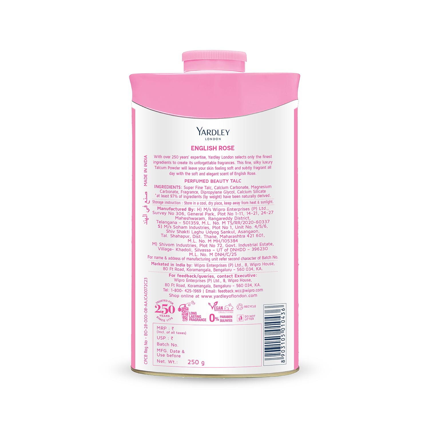 - Embrace Floral Elegance: Yardley's English Rose Perfumed Talc adds a touch of floral luxury to your daily routine