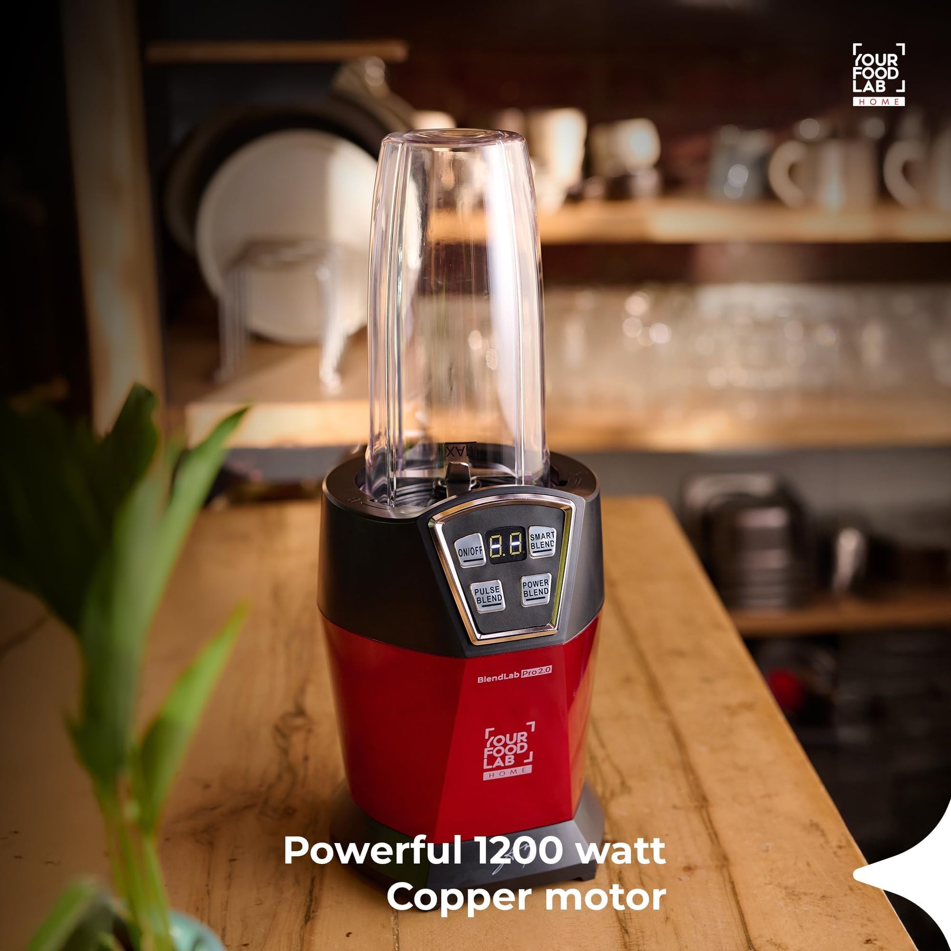 YFL HOME BlendLab Pro 2.0 Mixer Grinder for Kitchen, 1200W Blender with 2 Unbreakable Jars, 100% Copper Motor, Smoothie Maker with Preset Blend Modes, Laser Cut SS Blades | Blender for Smoothies (Red)