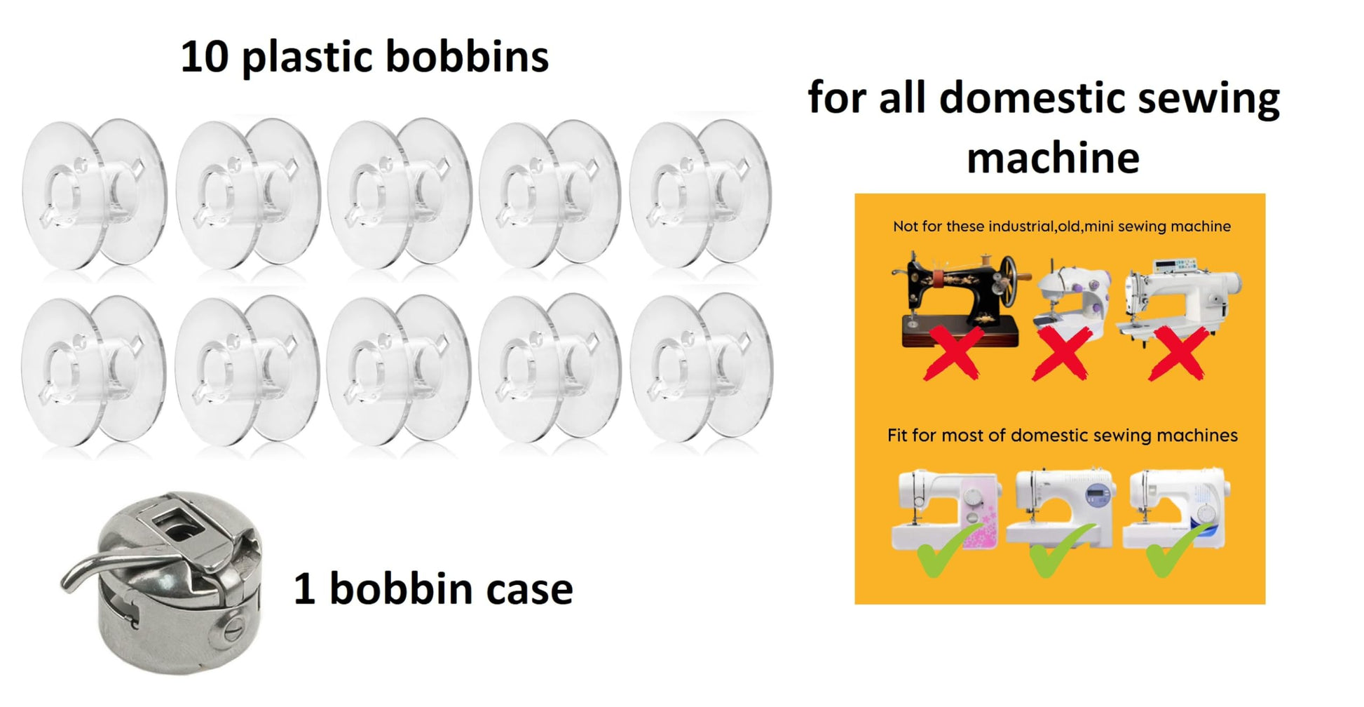 Zenith 10 Plastic Transparent Bobbins + 1 Bobbin Case for Any Automatic Sewing Machines (Singer/Usha/Brother)