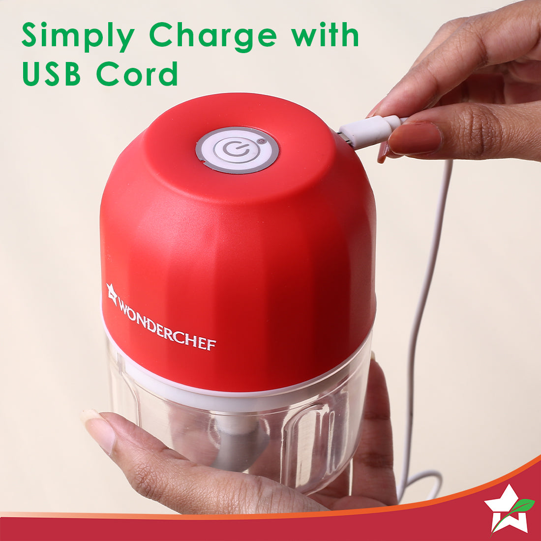 - CORDLESS OPERATION: Wonderchef Zippy Cordless Chopper is designed to be completely cordless, allowing for freedom of movement and flexibility in the kitchen. You don't have to worry about being restricted by power outlets or tangled cords.